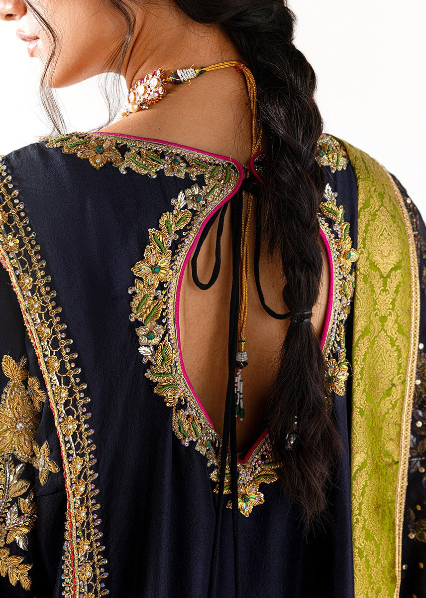 BACK ON SHESHA SILK FABRIC WITH WORK OF ZARI EMBROIDRY AND SEQUENCE EMBROIDERY WORL